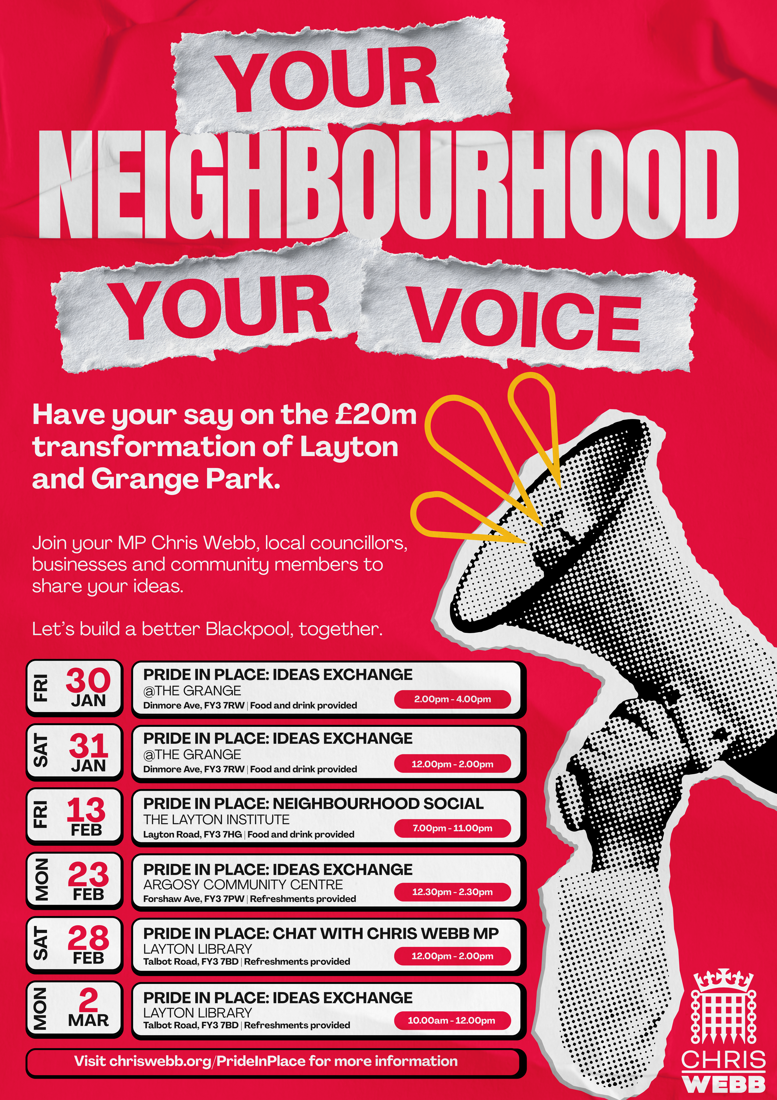 Through the Pride in Place Programme, I have secured £20 million of funding for Layton and Grange Park over the next ten years. That’s £2 million every year to invest in jobs, community facilities, youth services, green spaces and making our streets safer and cleaner.